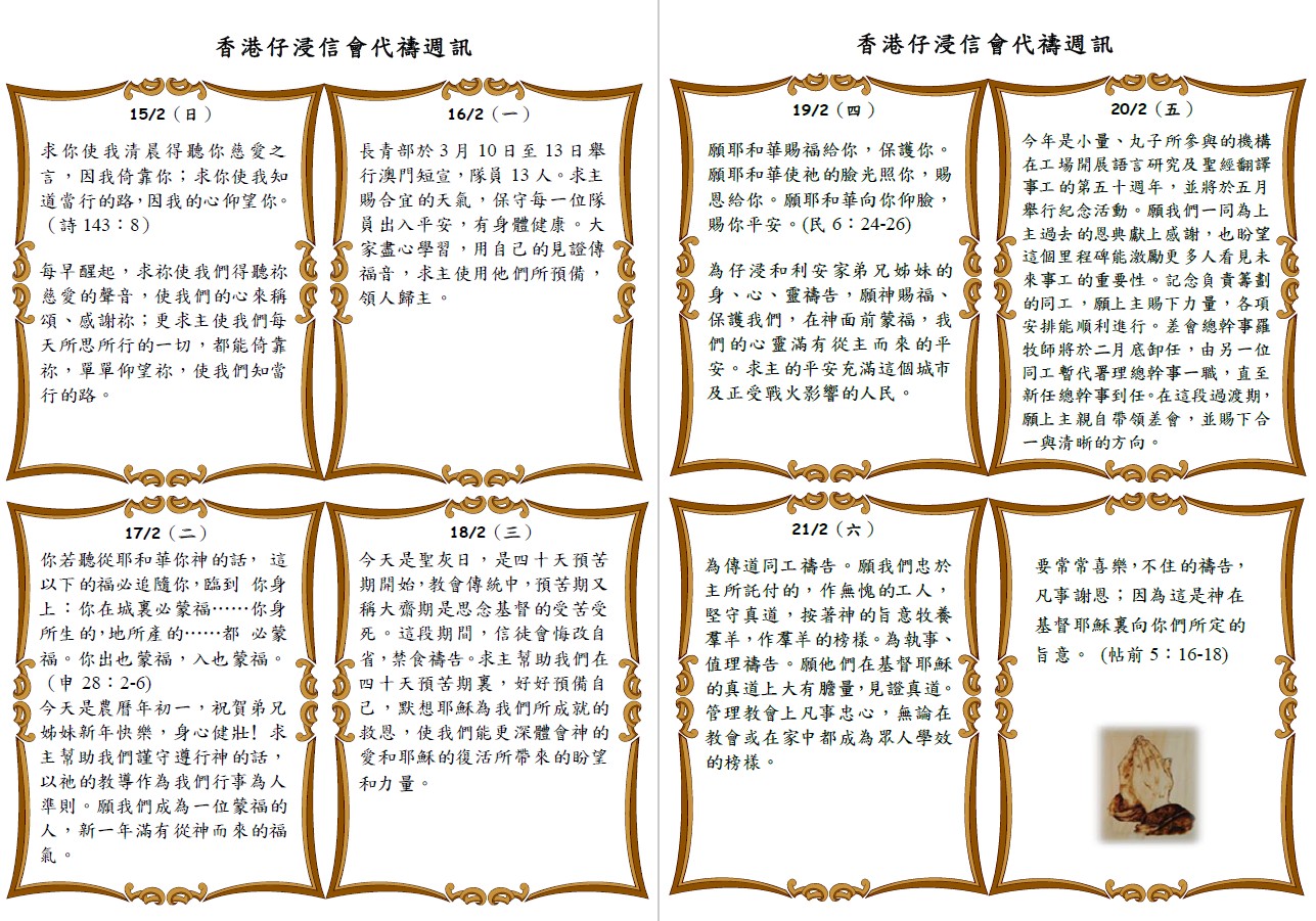 代禱週訊15Feb2026